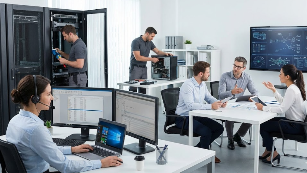 Mantenimiento preventivo y correctivo, soporte técnico presencial y remoto. Brindamos asesoría tecnológica profesional para asegurar el correcto funcionamiento de tus equipos y sistemas.